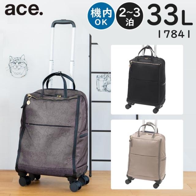 ace. /HAyU×ace. ユッカトローリー (33L) ネコ柄 ストッパー付き トロリーバッグ ソフトキャリー 2〜3泊用 3辺合計113cm 機内持ち込みサイズ 17841