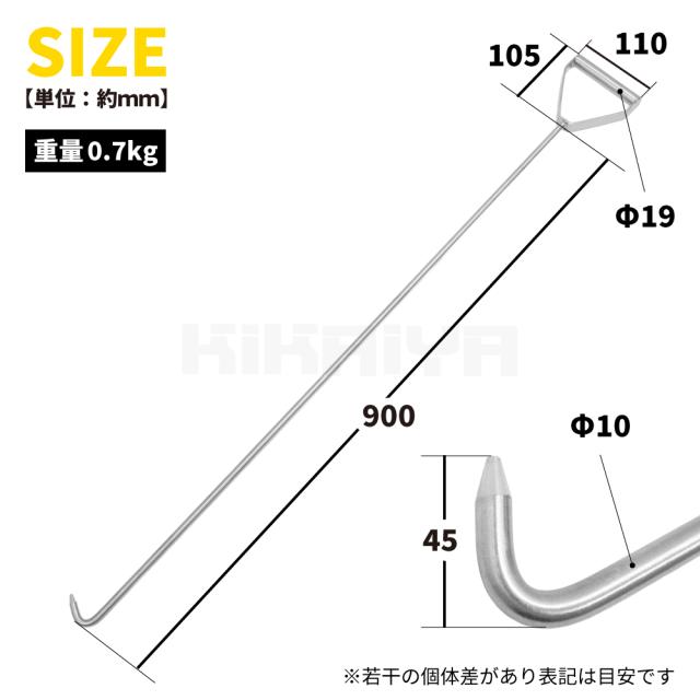パレットフック 900mm 2本セット 全長約1000mm ステンレス製 SUS304 パレット引っ張り棒 KIKAIYA