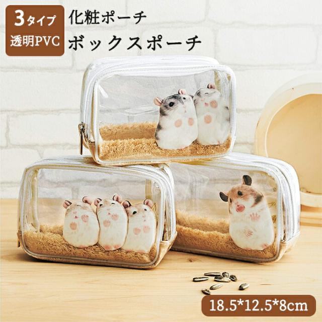 化粧ポーチ 大きめ 防水 透明 ハムスター 小物入れ ポーチ コスメポーチ ミニポーチ メイクポーチ ボックスポーチ 化粧バッグ レディース 女性 収納 小物収納 整理 大容量 コンパ 可愛い