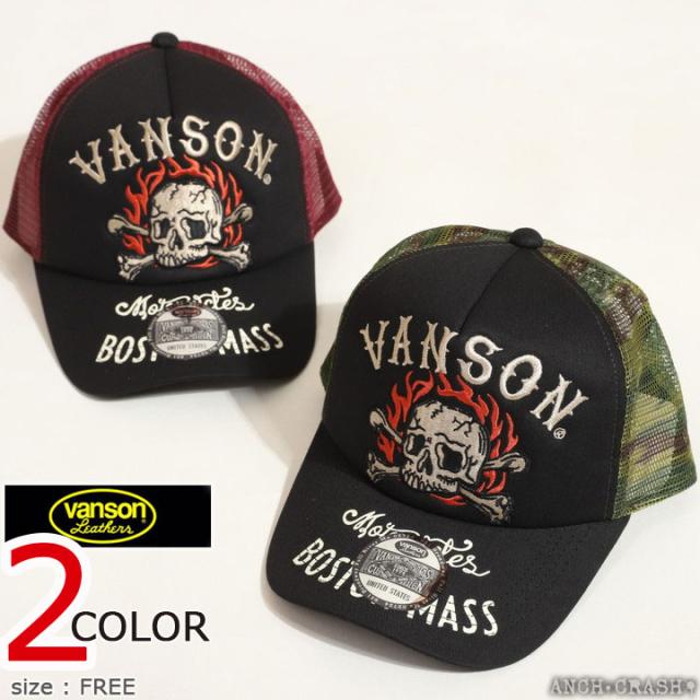 VANSON スカルボーン ツイルメッシュキャップ (NVCP-2511) 【送料無料】バンソン 刺繍 ステッカー