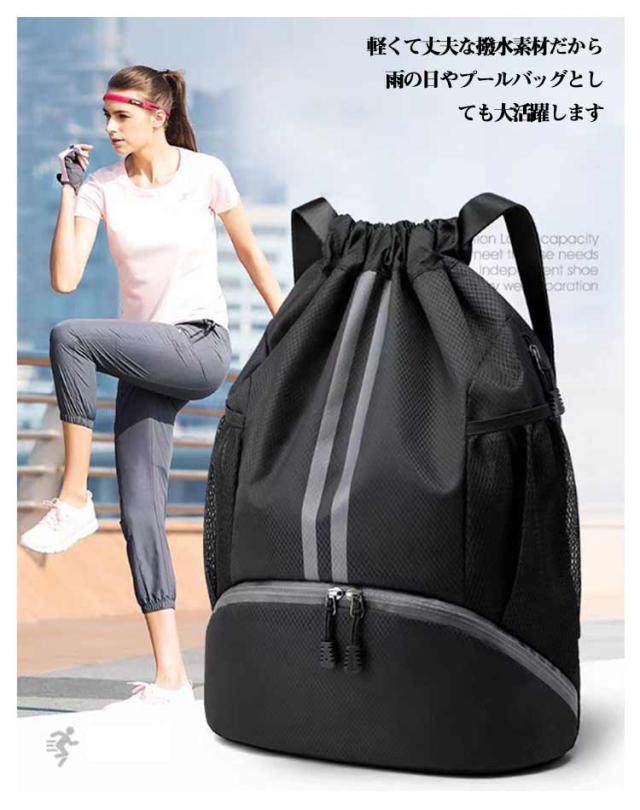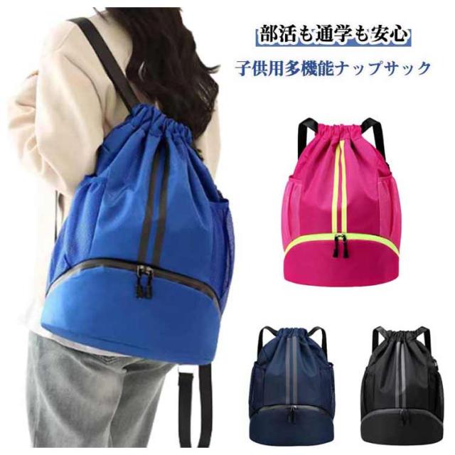サッカー ナップザック 防水ポケット付き キッズ スポーツ 大容量 撥水 ナップサック シューズ収納 ジュニア 靴ポケット 部活 通学 体操着入れ プールバッグ ナップサック バスケ ボール収納 大人 ジムサック