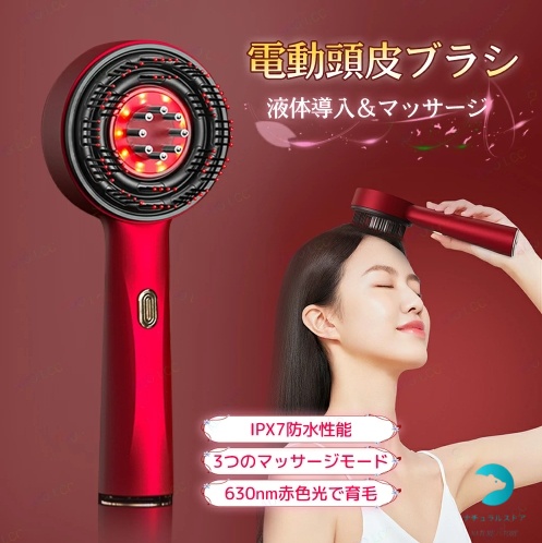 ヘッドマッサージ ヘアブラシ ヘッドマッサージャー IPX7防水 頭皮エステ 電動頭皮ブラシ ベタベタ髪 エッセンス導入 頭皮ケア ヘアブラシ 揉み 頭皮マッサージ ヘアケア ヘッドブラシ 乾湿両用 3つのモード LED光エステ レッドライト 美髪 軽量 プレゼント