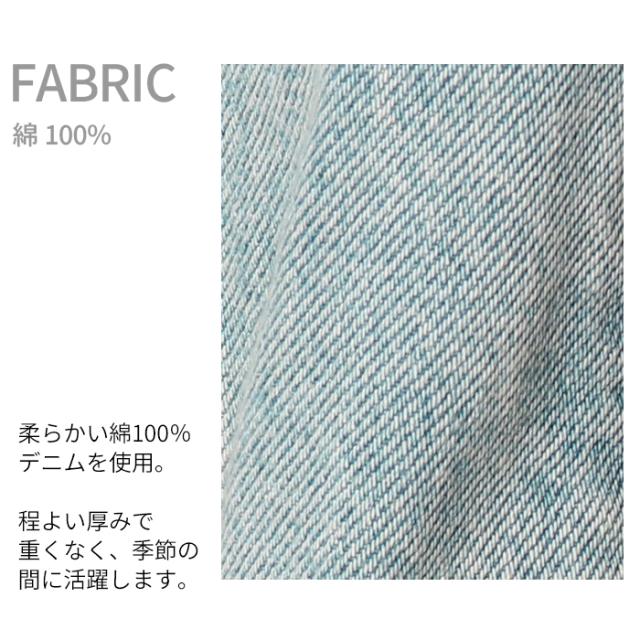 ゆったりとしたサイズ感と袖のボリュームがトレンド感のあるシルエット。 袖口のタックが袖のボリュームを出し、丸みのある可愛らしいシルエットに。身幅もゆったりしているので、中にパーカーやニットを合わせるのも◎!オーバーサイズですがワンピースやスカートにも合わせやすい着丈です。生地は厚すぎず薄すぎず、季節の合間にピッタリな柔らかいデニム素材。重ね着もしやすいデザインなのでロングシーズン活躍します。 |