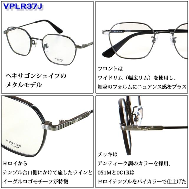 度付き メガネ ポリス POLICE 度入り 眼鏡 メンズ おしゃれ ブランド ヘキサゴン 六角形 チタンフレーム βチタンテンプル 軽量 VPLR37J 0C1R 0S1M 0S9G アンティーク調 おしゃれ かっこいい 度あり 近視 遠視 老眼 乱視 度なし 伊達 薄型 非球面レンズ セット 男性用