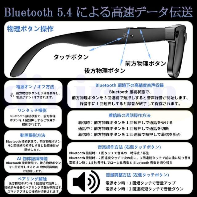 新世代!スマートグラス Bluetooth5.4 メガネ骨伝導 マイク内蔵 AIワイヤレスメガネ AI検索 720P録画可能 録音 iphone対応 アプリ記録 音楽再生 通話可能 高音質