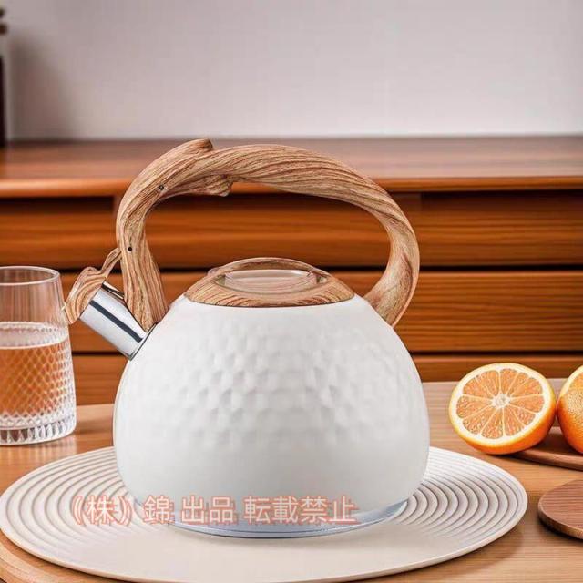 ケトル ステンレス 笛吹き やかん 3L 大容量 木目ハンドル 笛吹きケトル 湯沸かし ティーケトル 錦 簡単開閉 コンパクト ガス火/IH対応 北欧 広口 オフィス