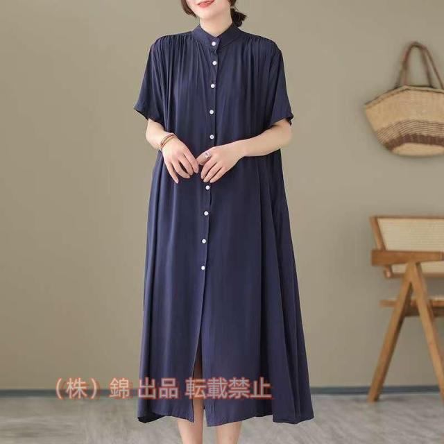 大きいサイズレディースワンピース新色追加風通るさらりコットン100%スタンド襟ワンピースオリジナル株式会社錦ワンピデザインワンピLL3L4L5LMA
