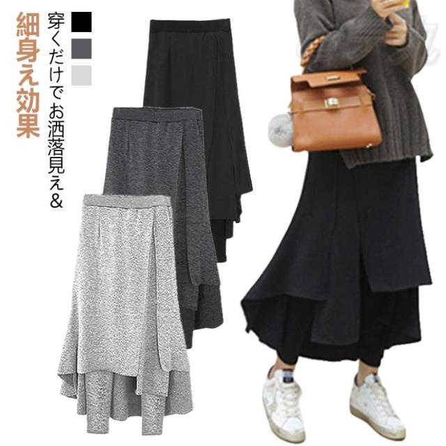 スカート付レギンス レギンス付きスカート 薄手 レディース スパッツ レイヤード風 重ね着 キュロット ロングスカート アシンメトリー スカート フレアスカート Aライン ボトムス レギパン 春秋 ウエストゴム ストレッチ 大きいサイズ 体型カバー 大人 可愛い 送料無料