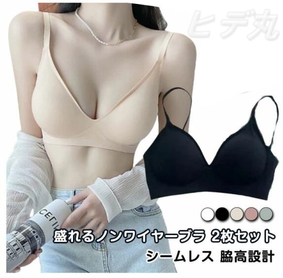 レディース バストアップ ブラジャー 盛れる シームレス 下着 ノンワイヤーブラ 2枚セット 谷間メイク 2枚セット 寄せブラ 美胸 脇高設計 補正ブラ 美乳ブラ 厚手パット付 補整ブラ 伸縮素材 苦しくない