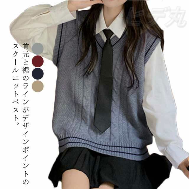 ニットベスト スクール ベスト 制服 Vネック ライン入り ケーブル編み 制服 ベスト コットン 女子高生 入学 通学 女子 中校生 高校生 学生服 春 夏 冬 レディース ニットベスト トップス ゆったり グレー ベージュ ネイビー 紺 【送料無料】