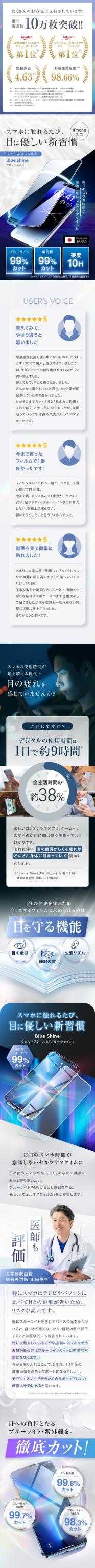 ブルーライトカットガラスフィルムは、スマホを暗い部屋や夜間に長時間使う方や、大切なiPhoneをしっかり守りたい方にぴったりのアイテムです。 強化ガラスで作られた10Hの硬度を誇るこのフィルムは、落下や衝撃からiPhoneの画面を保護します。 さらに、このフィルムはデザイン性にも優れています。 透明感が高く、映像や画像を鮮明に表示します。 貼り付けも簡単で、iPhone本体のデザインを損なうことなく、自然な一体感を実現。音ゲーやパズルゲームなど、繊細なタッチ操作が求められるアプリでも、スムーズに動作し、ケースとも干渉せず、安心してご使用いただけます。 iPhoneの美しさを保ちつつ、目にもやさしい快適な使用感を提供する、まさに「新領域」のガラスフィルムです。 あなたのiPhoneを、もっと快適に、もっと安全に使いたいなら、ぜひこの商品をお選びください。 |