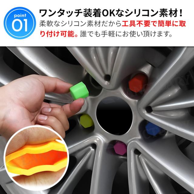 ホイールナットカバー 簡単装着 シリコン素材 錆防止 夜光タイプ カラフルデザイン 汎用設計 盗難対策 愛車ドレスアップ 個性プラス 5色展開 ワンタッチ装着