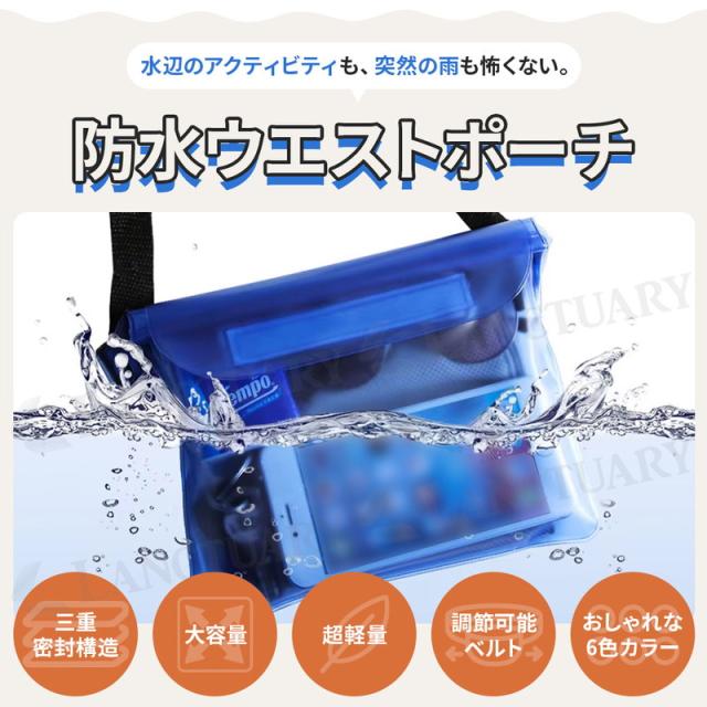 防水ウエストポーチ 簡易防水 スマホケース ウエストバッグ 透明 PVC プール 海 水泳 川遊び ビーチ 旅行 アウトドア フェス キャンプ 登山 釣り イベント 雨