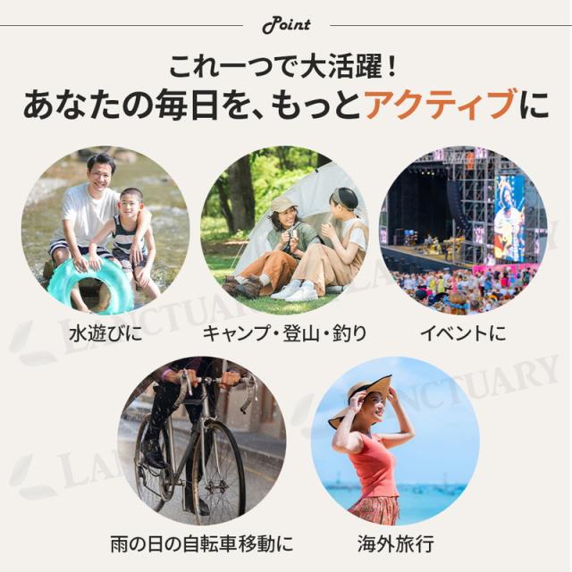 | 商品の説明 | 水辺のレジャーやアウトドアで、大切な荷物の水濡れを気にすることなく思いきり楽しみたい。そんな願いを叶えるのが、この防水ウエストポーチです。約22cm×17cmのワイドサイズで、スマートフォンはもちろん、鍵、財布、パスポートなど外出に必要な貴重品をまとめて収納できます。コンパクトながらも見た目以上の収納力で、身軽に出かけたい日にぴったりです。 開口部は三重の密封構造になっており、しっかりとロールして面ファスナーで固定することで水の侵入を徹底的にガードします。急な天候の変化や水しぶきにも強く、安心してアクティビティに集中できます。透明度の高いPVC素材を採用しているため、ポーチに入れたままで画面のタッチ操作が可能。わざわざ中身を取り出す手間がなく、写真撮影やメッセージの確認がスムーズに行えます。 わずか48gという超軽量設計なので、身につけていることを忘れるほどの快適さです。調節可能なベルトで、ウエストポーチとしても斜めがけバッグとしても使えます。お子様から大人まで、体型やシーンに合わせて自由にフィット。ブラックやレッド、パープルなど、気分やファッションに合わせて選べる6色の豊富なカラーバリエーションも魅力です。プールや海水浴、フェスやキャンプ、日常の雨の日など、様々なシーンで活躍する頼れる相棒です。 |