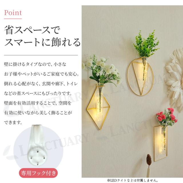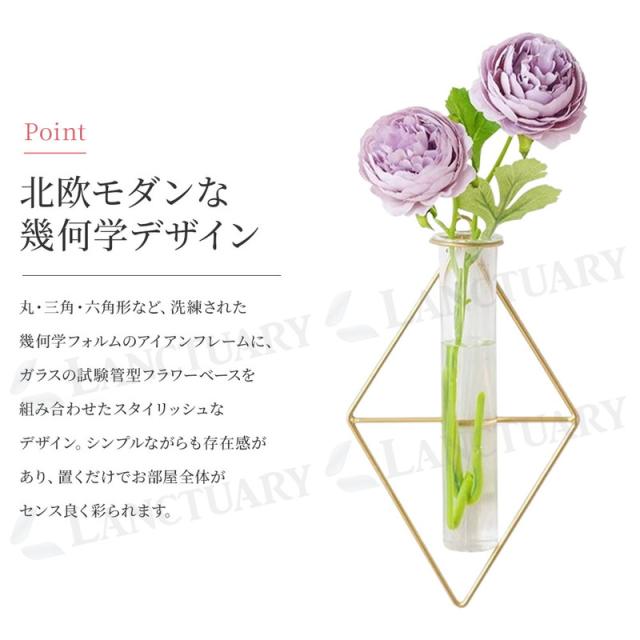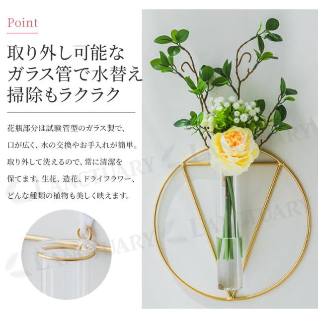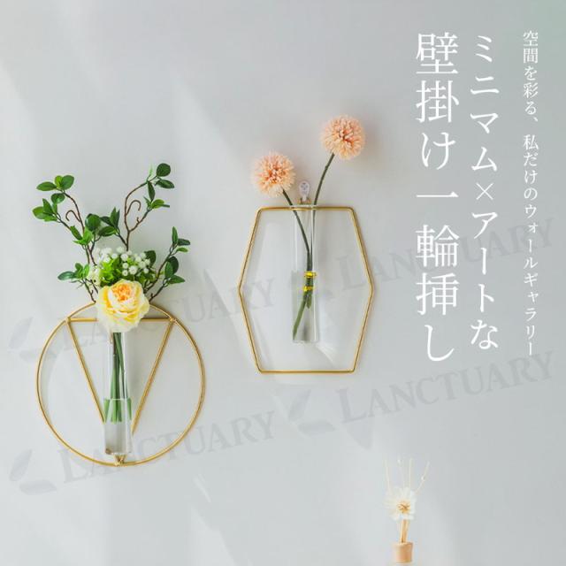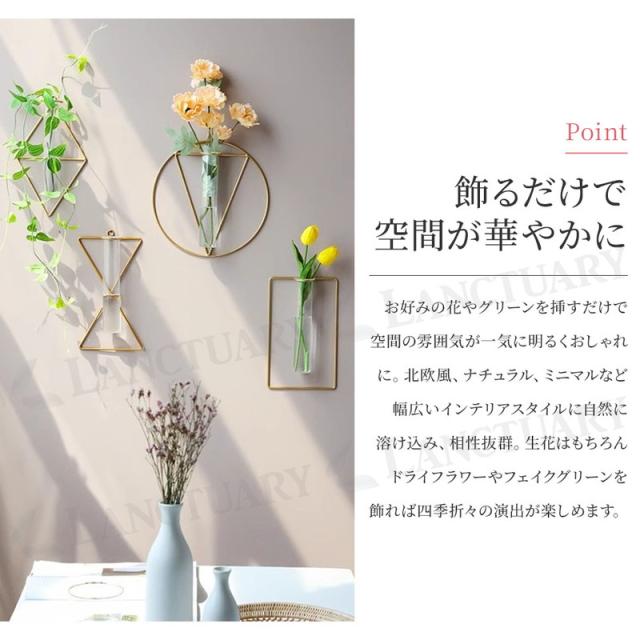 壁掛け一輪挿し フラワーベース 北欧 韓国インテリア ウォールデコ アート 幾何学 おしゃれ スタイリッシュ 花瓶 ガラス ドライフラワー フェイクグリーン 生花