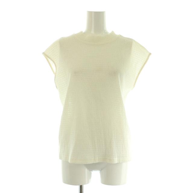 【中古】B&Y ビューティー&ユース バックリボンハイネックフレンチスリーブカットソー シャーリング ホワイト