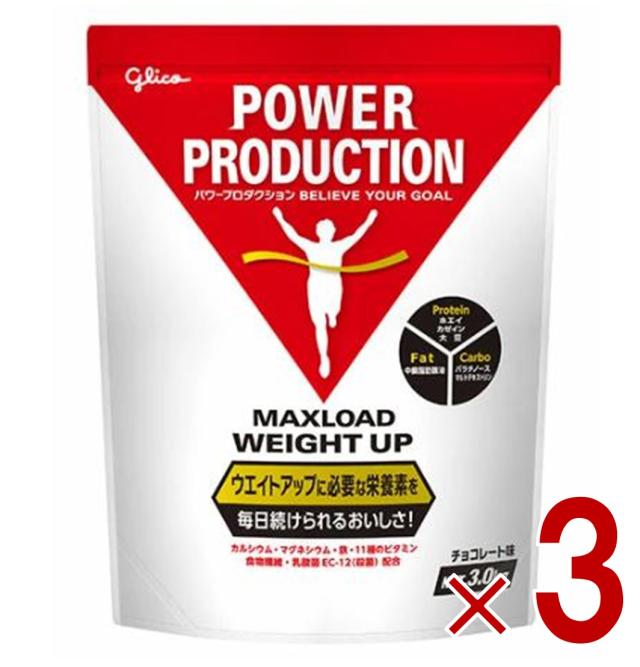 グリコ プロテイン ウエイトアップ パワープロダクション マックスロード チョコレート味 3.0kg 大容量 3個
