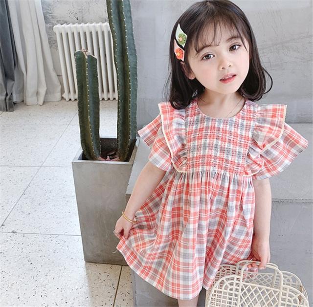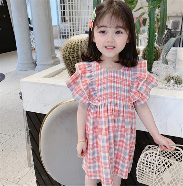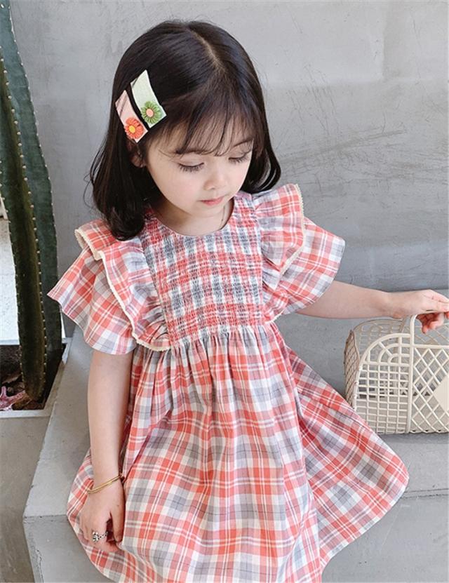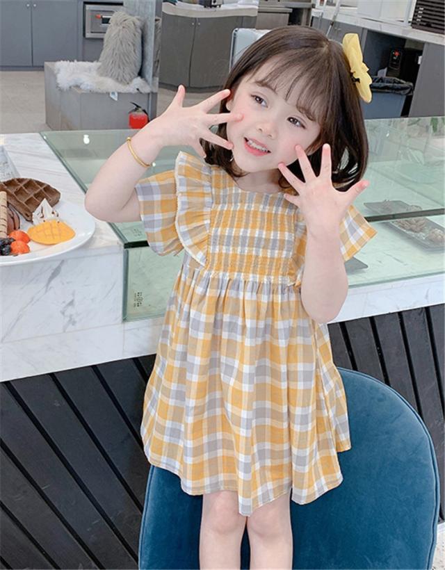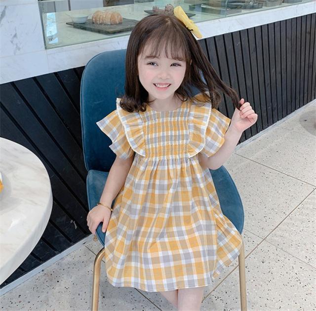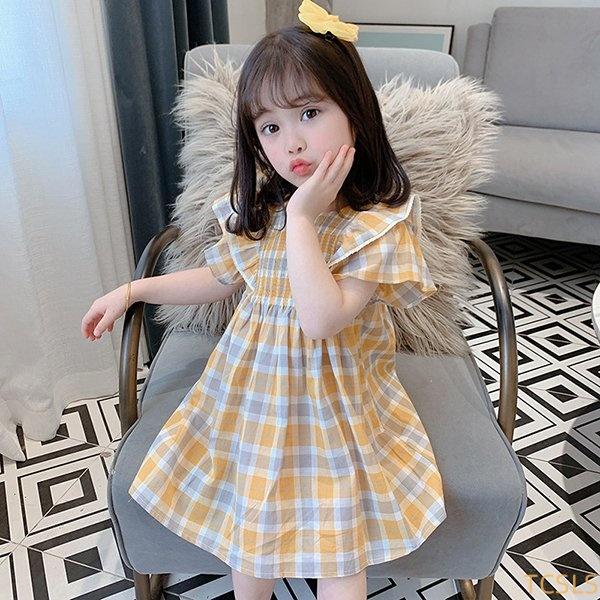 ワンピース キッズ 子供服 女の子 夏 キッズワンピース 半袖ワンピース フリル チェック柄 子供ドレス ベビー服 お姫様 おしゃれ 可愛い カジュアル 新品 90cm