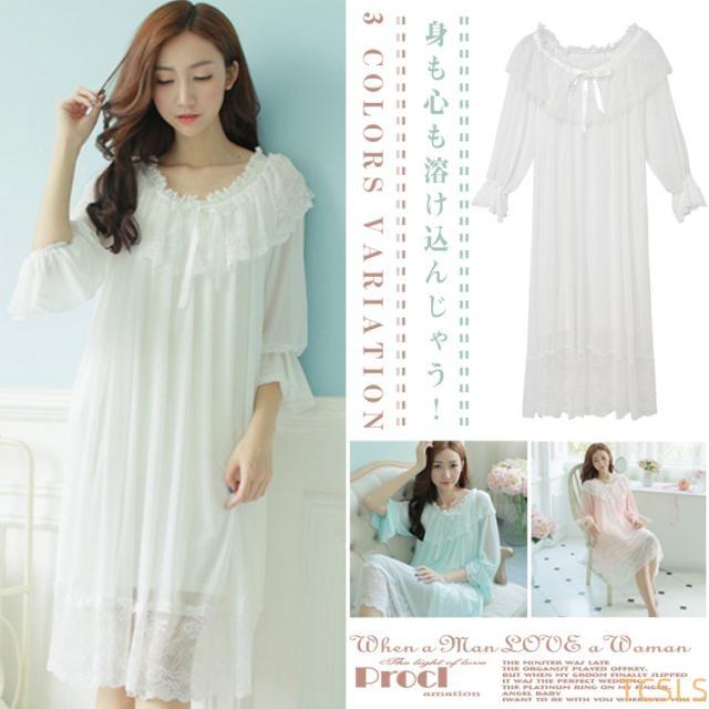 パジャマワンピース ロリータ お姫様 レース レディース パジャマ ルームウェア ナイトウェア 肌着 部屋着 ゴージャス 華やか ミモレワン