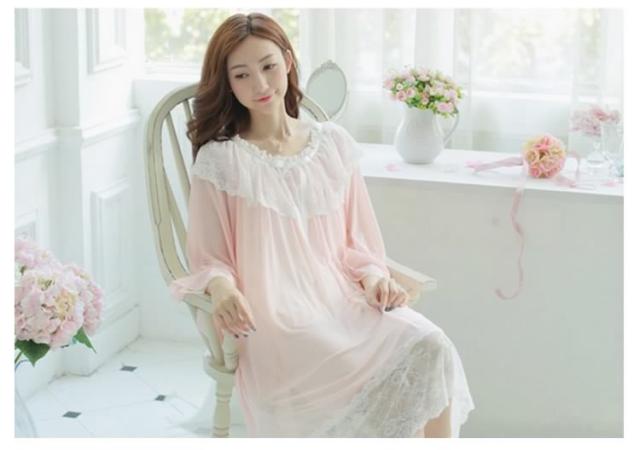 華やかなお姫パジャマワンピース 柔らかい スベスベ お洒落 パジャマ 大人 7分袖 春秋
