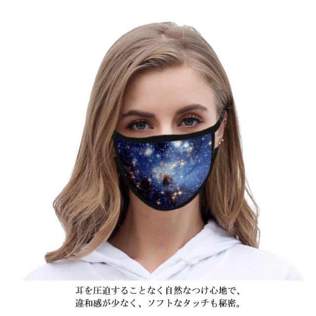 | スタイリッシュな3D立体設計洗えるマスク。 おしゃれな星空柄なので着装するだけで注目度抜群。 洗濯してもよれにくく、どんなファッションテイストにもマッチする接触冷感素材を採用。 顔にフィットしやすい3D立体縫製により喉の渇きを抑え、冬には防寒アイテムとしても大活躍。 耳を圧迫することなく自然なつけ心地で、違和感が少なく、ソフトなタッチも秘密。 軽くて丈夫なのに、通気性が高い! ウィルス飛沫や風邪が蔓延する時期、花粉が飛び交う季節、 そんな時こそのマスクは不可欠です。 | |