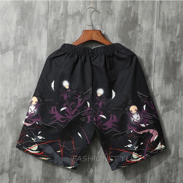 ショートパンツ 浴衣風 花柄 鳥柄 甚平風 和風 メンズ 甚平 ハーフパンツ カジュアル メンズボトムス 春夏秋 花火