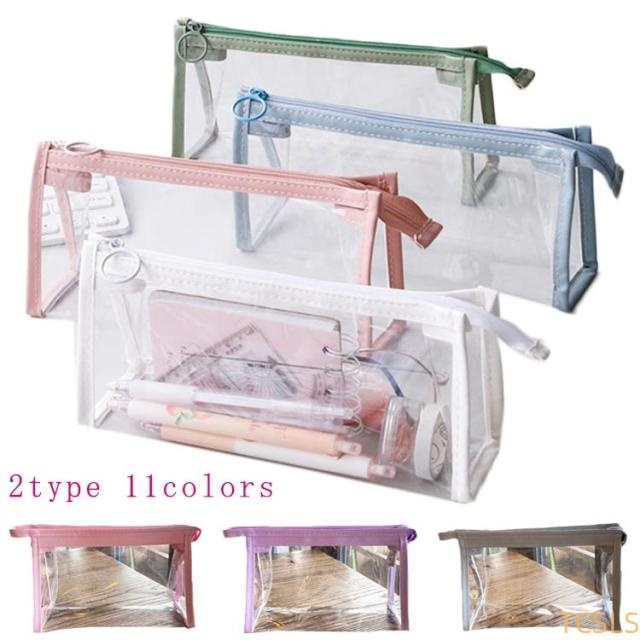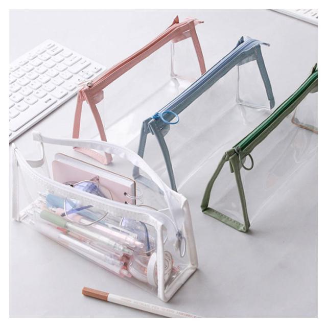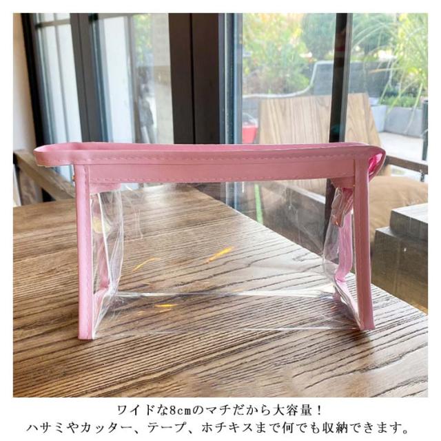 | 透明度の高いクリアーな素材の効果で、中身がハッキリと際立って見え、写真写りもバッチリ! ワイドな8cmのマチだから大容量!ハサミやカッター、テープ、ホチキスまで何でも収納できます。 文具の他にも、コスメ関係や趣味の小物、旅行用品などの整理・持ち運びに便利なポーチです。 | |