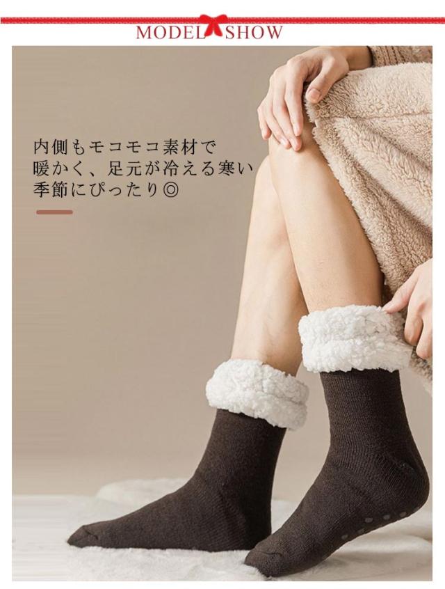 部屋着 裏ボア ルームソックス もこもこ 【送料無料】極暖 靴下 裏起毛 ソックス メンズ レディース ハイソックス 下着 インナー ルームシューズ 防寒 ふわふわ 極厚 あたっか ニット ストレンチ 無地 室内 冬物 滑り止め