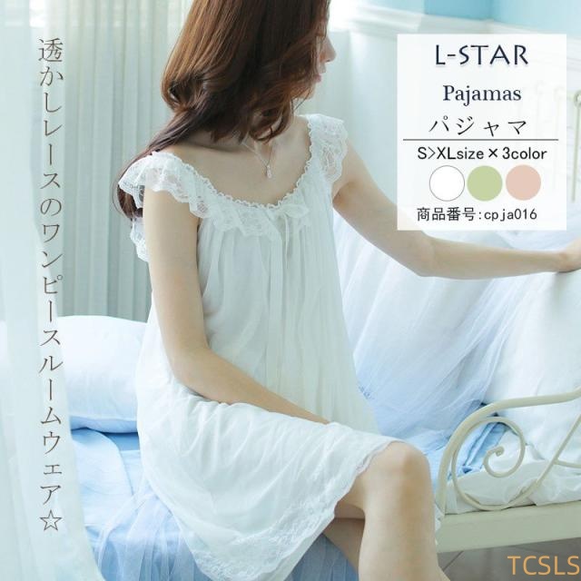 パジャマ ルームウェア レディース ワンピース レース ネグリジェ スリップ 体型カバー 膝丈 女性用 部屋着 寝巻き ランジェリー オフショルダー セクシー 夏