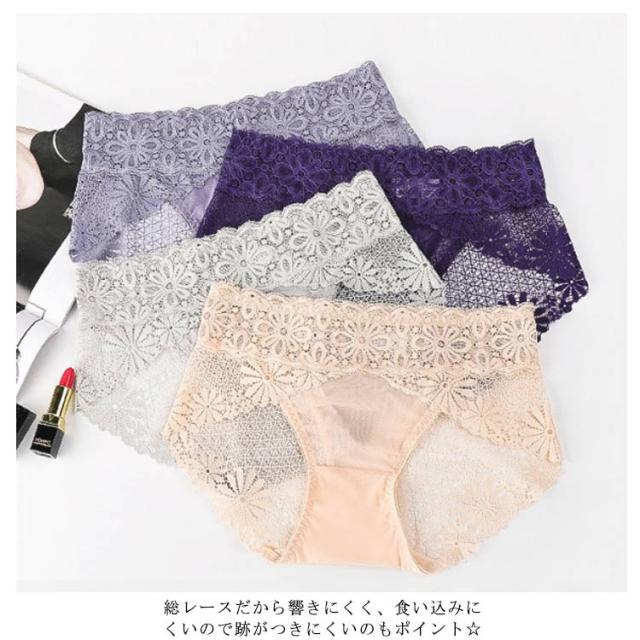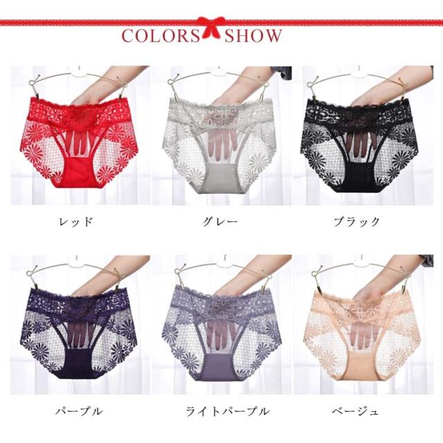 送料無料 総レースショーツ クロッチ綿 フラワーレース 花柄 スタンダードショーツ セクシー 透け感 ひびきにくい インナー 下着 伸縮性 婦人用