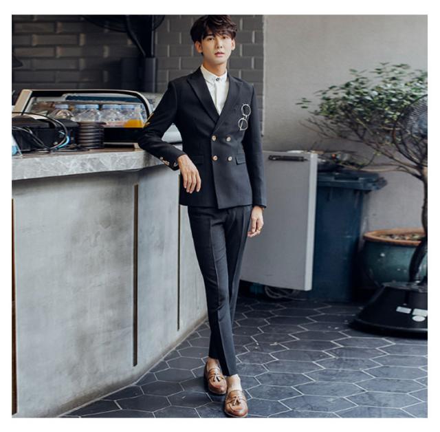 メンズ ダブルスーツ ビジネススーツ 2点セット セットアップ スリムスーツ 細身 入学式 結婚式 紳士服 二次会 春夏物