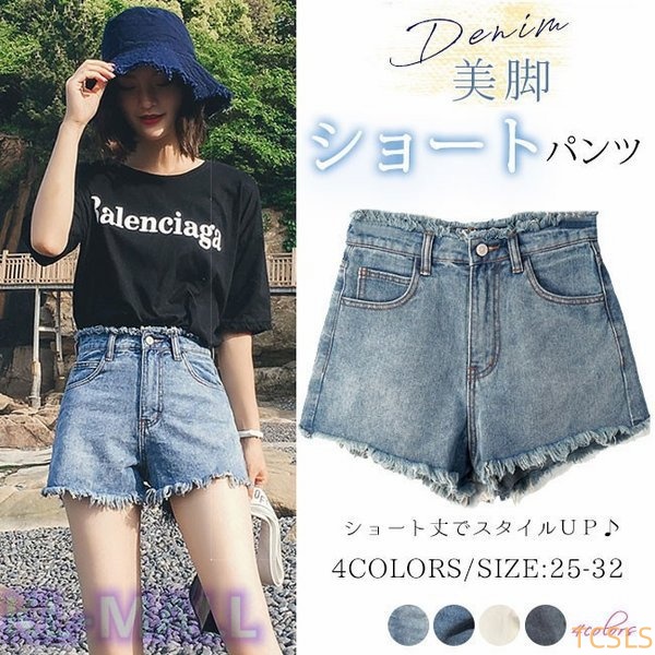 ショートパンツ レディース デニム KL ハイウエスト フレイドヘム 切りっぱなし 大きいサイズ 夏新作 ホットパンツ ジーンズ デニ