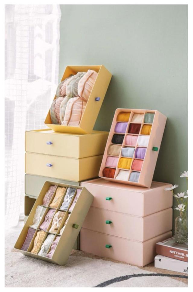 | 型崩れしないお洒落収納BOX?ショーツ・タイツ・ストッキング・ブラ・キャミソール類の収納に! 蓋つきなので重ねて収納することも可能です。 ハンカチや下着等の小さめの物も整理できます。 仕切り付きなのでバラバラになりがちなショーツや靴下等もスッキリ収納でき、サッと取り出せて便利です。 仕切りが取り外せることは可能ですので、様々なシーンのニーズに対応。 | |
