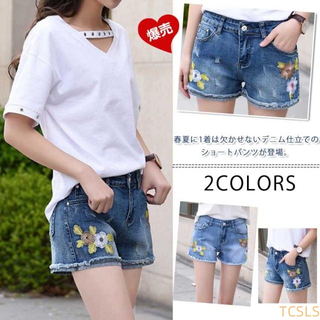 デニムショートパンツ 刺繍 ショートパンツ デニム ボトムス ミニ レディース