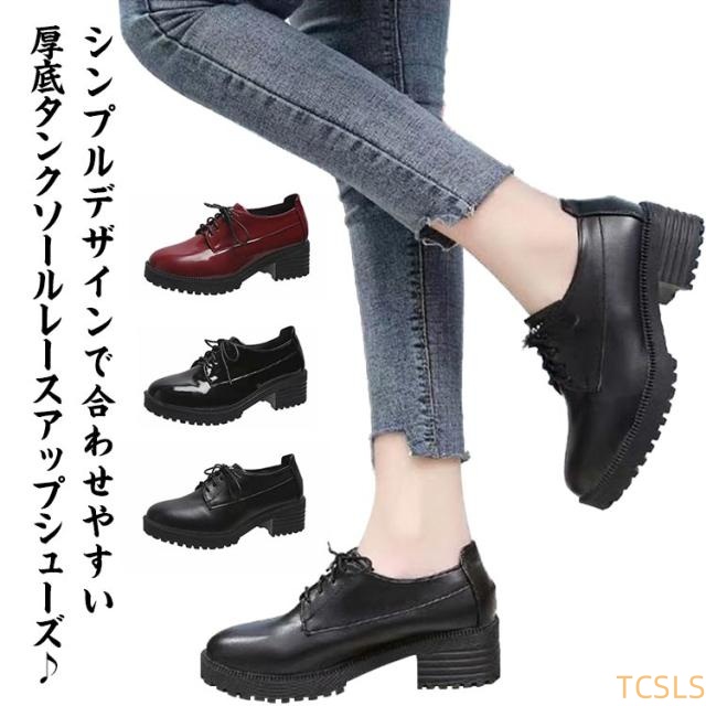 マニッシュシューズ オックスフォードシューズ レディース タンクソール 滑り止め加工 レースアップ 編み上げ 合皮スムース 合成エナメル 厚底ソール