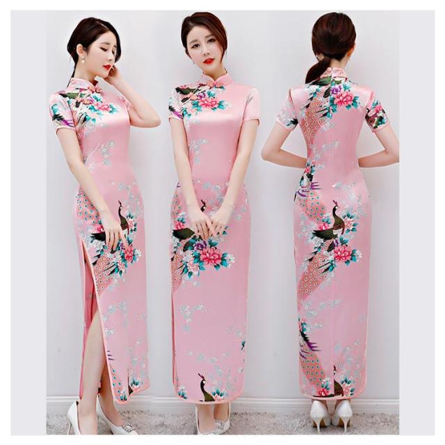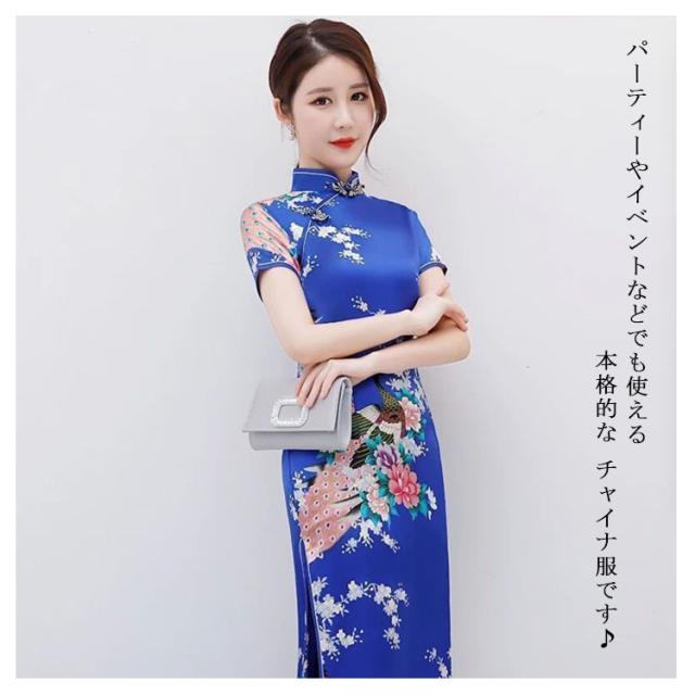 お呼ばれ 花柄 チャイナ服 文化祭 チャイナドレス チャイナワンピース ロング ワンピース ドレス 半袖 大きいサイズ エレガント チャイナドレス 上品 お洒落 中華風 孔雀柄 セクシー イベント パーティードレス 舞台 結婚式 発表会 二次会 コスプレ仮装 クジャク柄