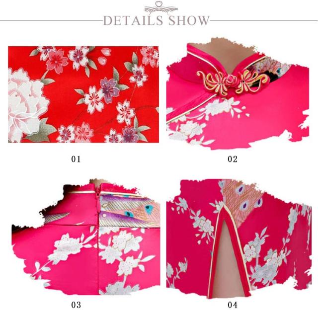 | クジャク柄が目を惹くチャイナドレス! 深いスリットは足長効果バツグンです。 全体の生地もしっかりしているので高級感もありおすすめのコスチュームです。 着るだけで華やかになり、撮影会などにも? パーティーやイベントなどでも使える本格的なチャイナ服です♪ | |