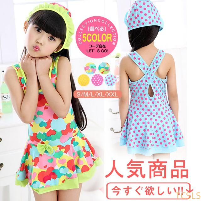 送料無料スイムキャップ付き ワンピース水着 女の子 2点セット こども水着 子ども水着 水着 子供用 キッズ用 子供水着 ビキニ