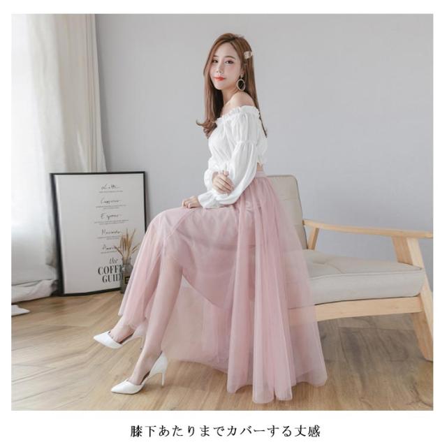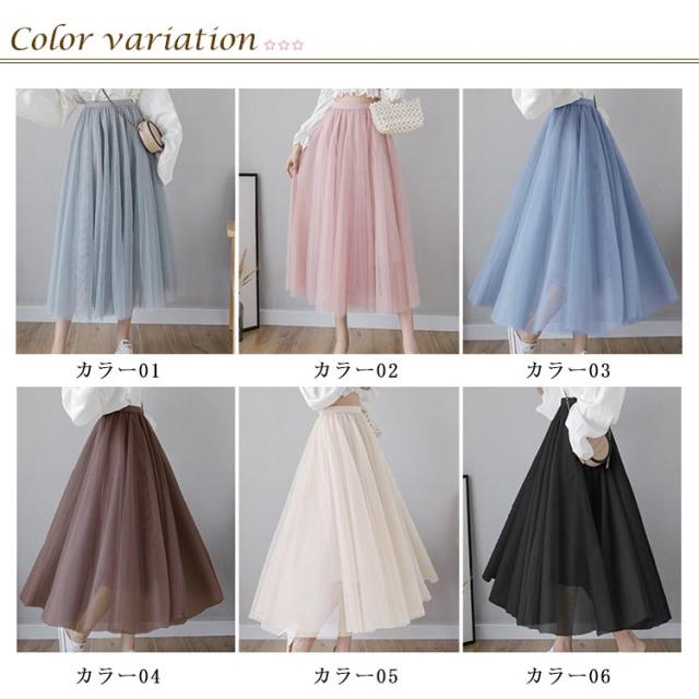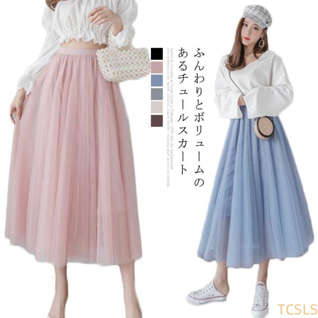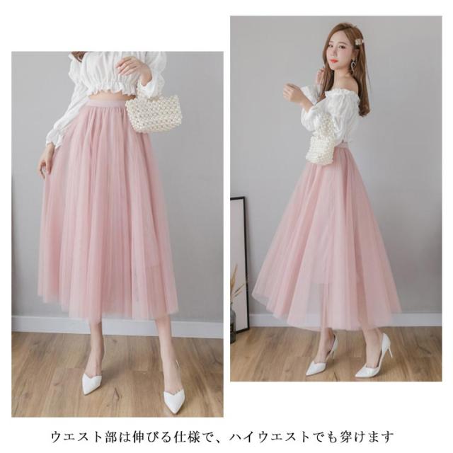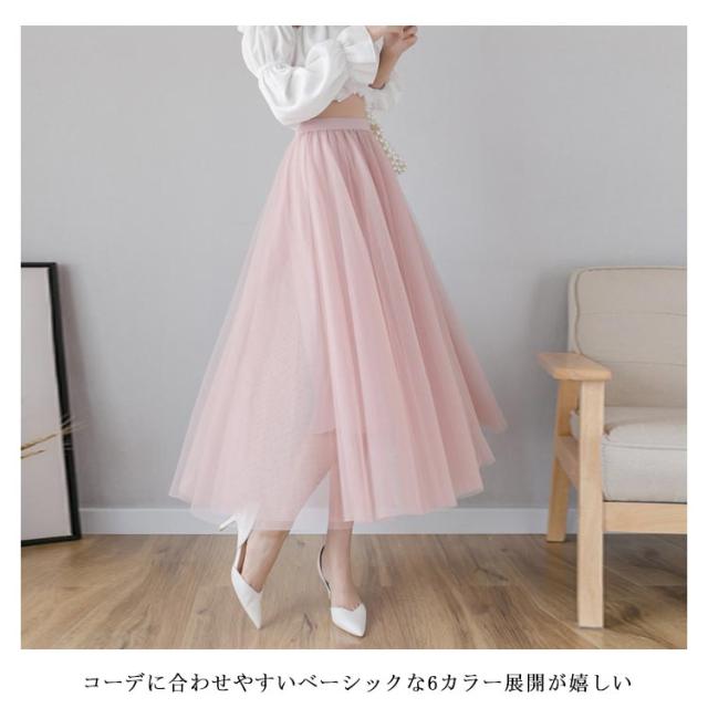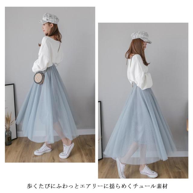 チュールスカート レディース フレアスカート ロングスカート ミディアムスカート ハイウエスト チュール ティアードスカート ロング丈 裏地付き お洒落 キレイめ ふんわり ボトムス 大人可愛い 上品 こなれ感 2020夏新作