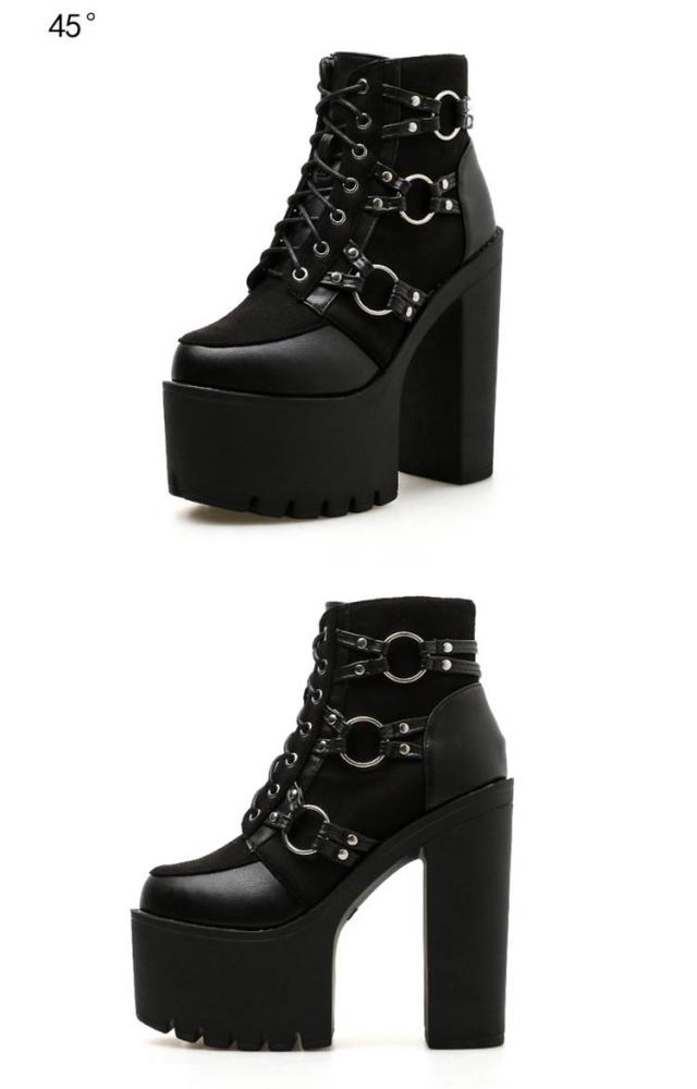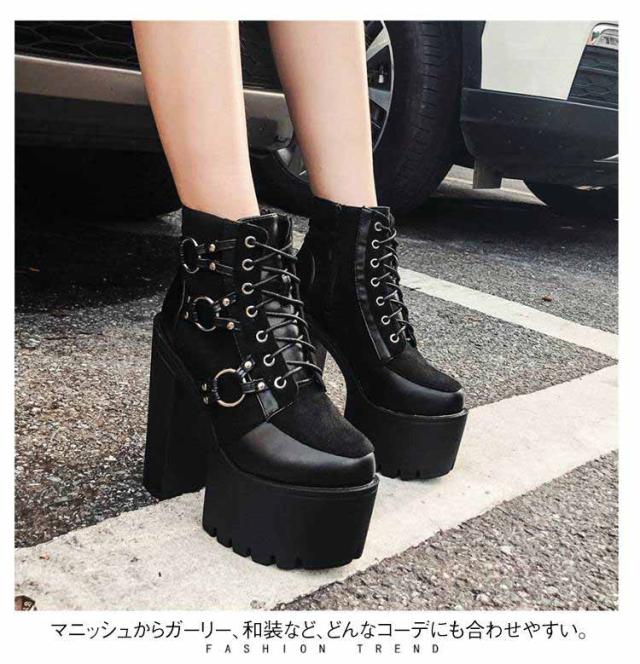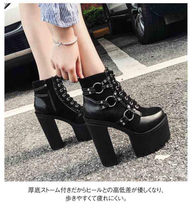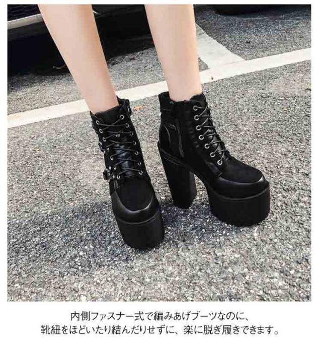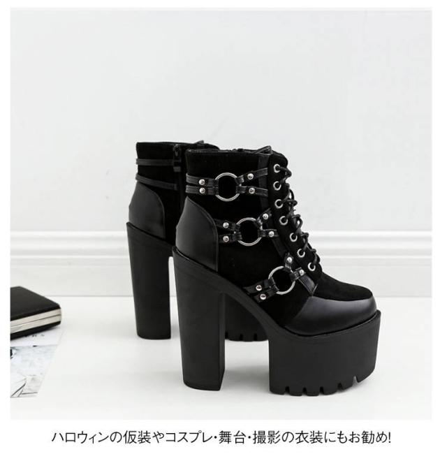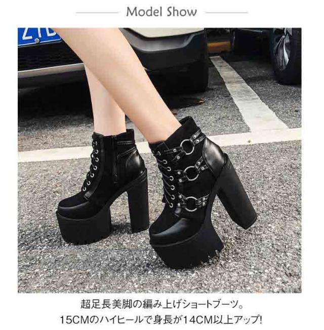 美脚 15cmヒール 厚底 ブーティ 厚底靴 レディース 太ヒール レースアップ 編み上げ ショートブーツ コスプレ 仮装 イベント ブーツ パーティー ハイヒール 舞台用 大きいサイズ 黒