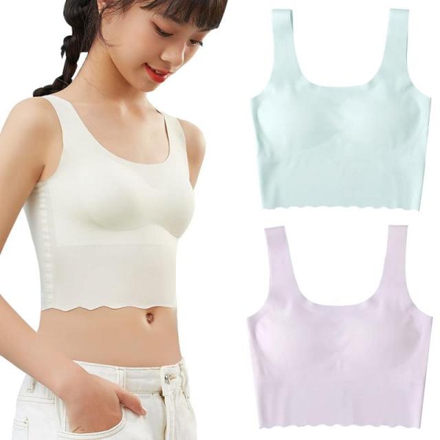 [HYJEAL] スポーツブラ ノンワイヤーブラジャー 成長期のバストをしっかりささえる 部活ブラ 綿でさらさら ガールズ 吸汗速乾 中学生 小学生 ガールズ 部活ブラ下着 (ピンク、青, M)