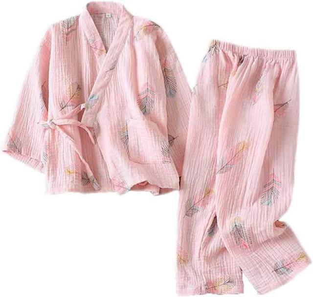 [SLMJMY] 子供 パジャマ 綿100 寝間着 長袖 長パンツ 柔らかい 二重ガーゼ 女の子 男の子 浴衣 ペアパジャマ ルームウェア 上下セット コットン 吸汗 通気 部屋着 寝巻き子供 甚平 可愛い 夏春秋 (ピンク, 140)