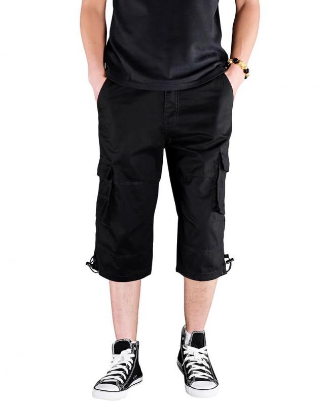 (ソインガ) Soinnga カーゴパンツ 7分丈 ショートパンツ メンズ ミリタリー 半ズボン クロップドパンツ ハーフパンツ 無地 綿 (33, ブラック)