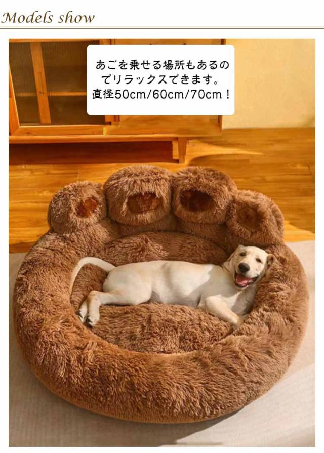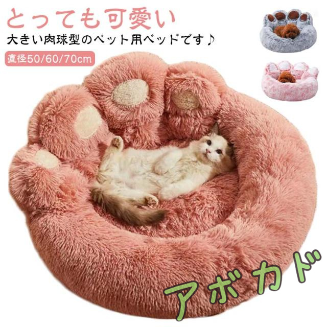 | とっても可愛い大きい肉球型のペット用ベッドです♪ あごを乗せる場所もあるのでリラックスできます。直径50cm/60cm/70cm! 毛足の長い柔らかシャギー毛が暖かくペットを包み込むペットソファ。 ふわふわあったか!愛犬や愛猫が寝るときの圧力を分散して、体の重量をしっかり支えます。 可愛い肉球デザイン、部屋のインテリアに馴染みやすく、ある程度で体を包み込むような暖かさを提供しており、ペットちゃんに暖かい環境を与えます。 | |