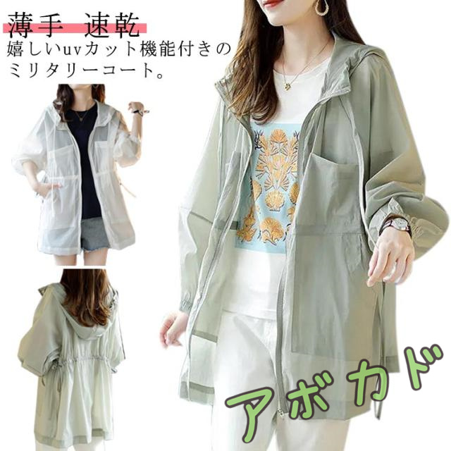 ジップアップ 薄手 長袖 大人 レディース UVパーカー ミリタリー コート 透け感 UVパーカー uv対策 接触冷感 速乾 ロング 冷感 涼しい 日焼け止め カーディガン 羽織り uvカット 体型カバー パーカー 春夏 春 夏 ラッシュガード