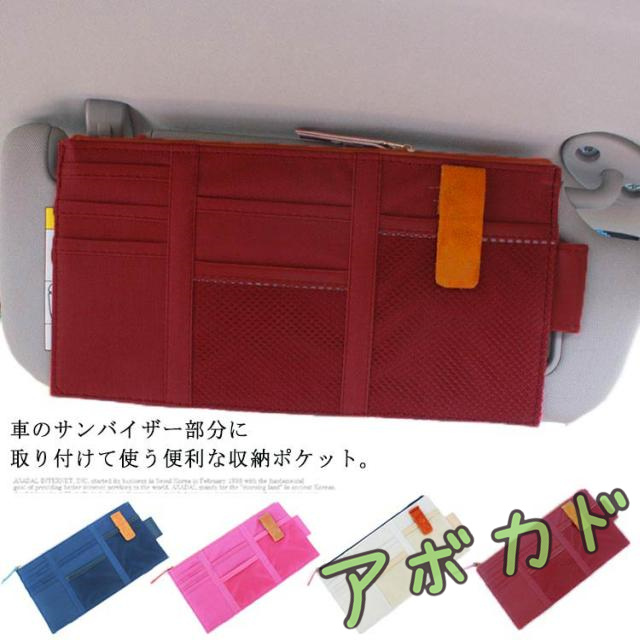 | 車のサンバイザー部分に取り付けて使う便利な収納ポケット。 全面のポケット6個にはカードやチケットなどが収納できます。 大口のファスナーポケットにはスマホや化粧品などの小物も入れられます。 サイドにはボールペンなどをいれられるホルダーもあります。 取り付けも簡単で車内の便利グッズです。 | |
