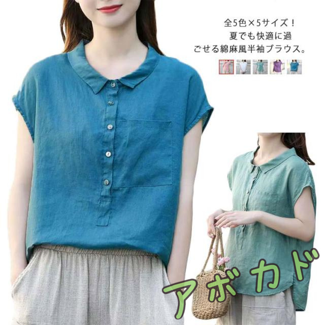 ブラウス 半袖 レディース 丸襟ブラウス トップス 半袖ブラウス プルーオーバー 綿麻風 ナチュラル カジュアル 綿 コットン シンプル 無地 春 夏 送料無料 20代 30代 40代