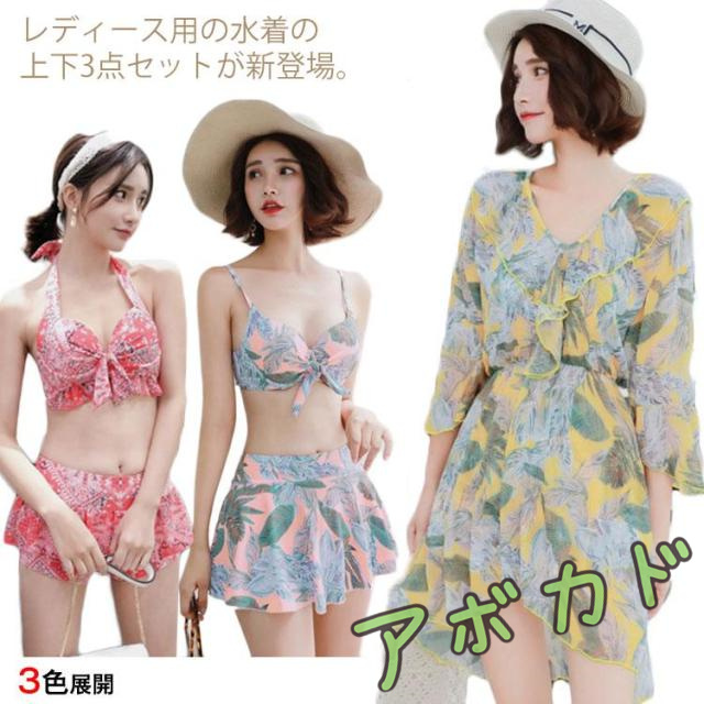 水着 レディース タンキニ ビキニ スカート ワンピース 3点セット ボタニカル 体型カバー 大きいサイズ 大人可愛い パッド付 大人女子 セクシー送料無料