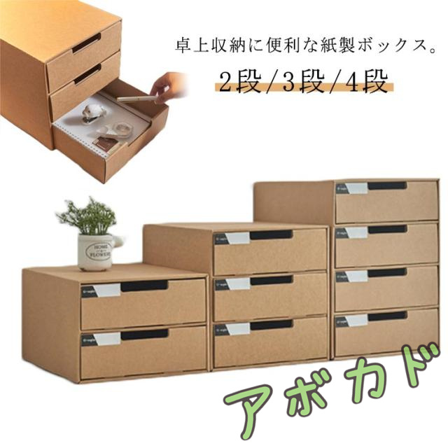 2段/3段/4段 収納ケース 引き出し 送料無料 卓上収納ケース 引き出し収納 収納ボックス 小物収納 フタ付き おしゃれ 引き出し式 紙製 押入れ用 段ボール ボックス 収納 書類 洋服 衣類 下着 おしゃれ 卓上 収納 文房具 オフィス