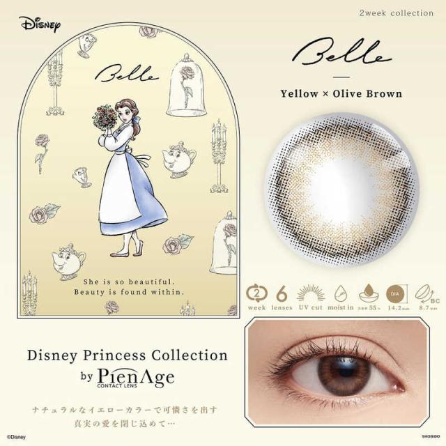 粧美堂 (度あり/-0.75) ディズニープリンセス by ピエナージュ イエロー×オリーブブラウン (BC8.7/DIA14.2) 6枚入 カラコン PA-DN93438